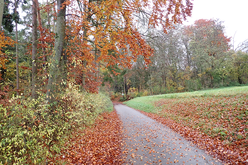 Über die Strecke selbst gibt es jetzt eigentlich auch gar nicht großartig was zu berichten. Zu sehen gibt es quasi auch nichts. Was aber nicht wirklich stimmt, denn der Wald ist sehr schön. Ein Mischwald mit vielen Buchen und vereinzelt auch Eichen. Diese haben ihr Laub im Gegensatz zu den Weißtannen und Fichten schon abgeworfen, was einen optisch sehr schönen Weg durch den Wald ergibt, auf dem wir laufen. Auch von der Laufqualität her tut das keinen Abbruch. Ab und zu müssen wir aber auch raus aus dem Wald und es gibt Wohnviertel oder auch schon mal ein Industriegebiet zu durchlaufen. Das ist jetzt nicht weiter tragisch. Man merkt so, dass man vorankommt und hat dann auf der zweiten Runde auch ein paar Orientierungspunkte. Nur im Wald, da wäre das dann schon etwas schwieriger. Jedenfalls kommen wir so auch durch den Rutesheimer Ortsteil Perouse. Ich bin etwas irritiert. Das klingt jetzt doch eher Französisch und das erkenne ich daran, dass ich gar nicht weiß, wie man das aussprechen soll. Schwäbisch verstehe ich auch oft nicht, aber das hier muss schon französisch sein. Erstens ist kein „le“ hintendran und zweitens klingt es schon ziemlich nach Paris.