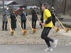 Alphornbläsern der Marsch geblasen, bevor es in die Lechauen