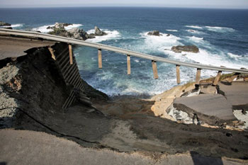 Ein Erdrutsch zerstörte am 17. März den California Highway 1.  |