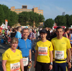 | Bei frühsommerlichen Temperaturen hatten für den 8.Freiburg   Marathon über 11.000 Teilnehmer/innen gemeldet.          An der 21-Kilometer-Schleife durch die Freiburger Innenstadt und entlang der   Breisach feuerten 80.000 Zuschauer unterstützt von den 42 „RUN&ROCK“-Bands   die Läuferinnen und Läufer an. Die frühsommerlichen Temperaturen stellten für einige Teilnehmer eine besondere   Herausforderung dar. Insgesamt mussten 80 Personen medizinisch versorgt werden, zehn Personen wurden   sicherheitshalber zur weiteren Beobachtung ins Krankenhaus gebracht. Magic hatte keine Probleme und brachte als Sub 3:30-Pacer seine Leute wieder punktgenau ins Ziel.  |