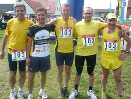 Der 29. Landrat-Dr.-Frey-Landkreislauf fand in diesem Jahr im Horgauer Ortsteil Auerbach statt. Knackige Steigungen über Feld- und Waldwege waren sowohl auf der 4,15 km, als auch auf der 5,85 km Runde besonderes Merkmal der Veranstaltung. Das Wetter präsentierte sich für die 167 Mannschaften von seiner besten Seite. Zunächst leicht bedeckt, später dann sonnig und heiß. 70 Kuchen hatten die fleißigen Frauen der SpVgg Auerbach/Streitheim gebacken um alle zufrieden zu stellen. Für TT sprang ein hervorragender 37. Platz heraus. Am Start waren Udo, Judith, Tom, Sherin, Gerry, Gerhard, Jan und Hans.