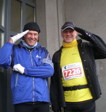 | Zum 10. Mal fand heuer der Lionslauf statt. Insgesamt konnten in 10 Jahren bereits 90.000 Euro von den Organisatoren der Lionsclubs aus Eichstätt und Neuburg für karitative Zwecke zur Verfügung gestellt werden. Hans und Charly waren für TT unter den 336 Finishern des Hauptlaufs. Neben den 23,5 km und 250 Höhenmetern sorgten winterliche Verhältnisse auf der Strecke von Eichstätt nach Neuburg für erschwerte Bedingungen.  |