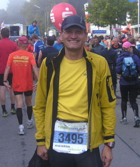 Fast 4.000 Halbmarathon-  und 10 Kilometer-Läufer starteten um 10 Uhr im Gmunder Ortszentrum zum Tegernseelauf, der von den  Halbmarathonis einmal umrundet wurde. Perfekte äußere Bedingungen und eine  traumhafte Laufkulisse zogen  zahlreiche Zuschauer an die Strecke. Mario lieferte sich ein Duell mit Kai Plaume, das er mit 5 min. Vorsprung für sich entscheiden konnte.   |