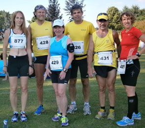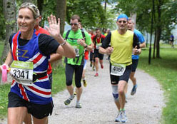 | Alle Startplätze vergeben! Auch bei der 11. Ausgabe kämpfte sich ein 1.300 Teilnehmer starkes Läuferfeld über den berüchtigten Friedberger Berg, wo es in jeder Runde 35 Höhenmeter auf 350 m Länge zu bezwingen gab. Judith verpasste als 5. Frau den Sprung aufs Treppchen nur knapp. 20. Frau wurde Iris. Halbmarathon-Debütant Rudi konnte angespornt durch Greppi die 2-Stunden-Marke auf Anhieb knacken.  |