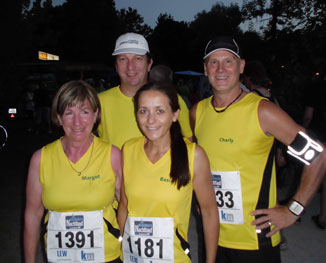 |  Um 21.30 Uhr fiel der Start-schuss für die zwei Runden um den Kuhsee. Die insgesamt fünf Kilometer lange Strecke wird durch 250 Fackeln und einen glühenden Heißluftballon ausgeleuchtet. Bei tropischen Nachttemperaturen von 26 Grad absolvierten über 550 LäuferInnen den Rundkurs. Der Schnellste war in 15 Minuten im Ziel. Charly gab richtig Gas und kam 5 Minuten dahinter ins Ziel.  |
