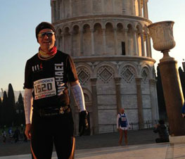 | Bei Traumwetter wurde die 15. Auflage des Pisa Marathon ausgetragen. Die Strecke führte von der Piazza del Duomo in Pisa nach Tirrenia  ans Mittelmeer. Nach einigen Strandkilometern ging es am Arno entlang wieder nach Pisa zurück. Michael feierte seinen 10. Marathon und war trotz schwacher Marathonbeteiligung und Zuschauerzahlen begeistert vom Kurs.  |