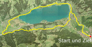 bis zum Alpsee, dann auf dem Uferweg bis zur Westspitze des Sees