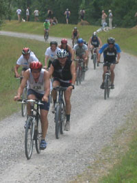 auf dem MTB, am Lechdamm entlang. Eigentlicht ist beim Triathlon