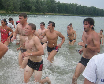 Der Triathlon besteht aus 500 Meter Nahkampf im See, 18 km Kiestrail