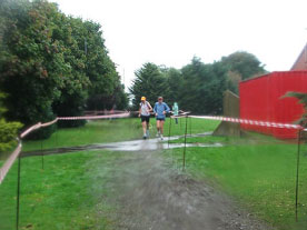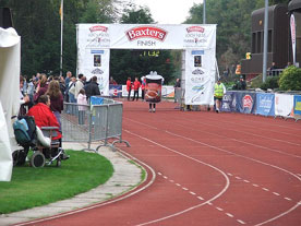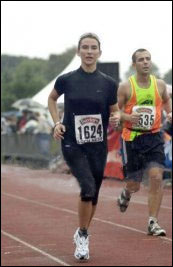 in das Ziel gehumpelt, Medaille bekommen und danach 'ne ganze Stunde