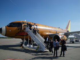 des Münchener Airport und schau mir so unseren braunen Flieger