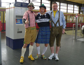 Maddinsche hat seine Lederhose dabei. Bald sind wir umringt von