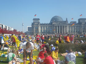 die Ausländer gedacht und viele laufen dort auch in ihren Landesfarben