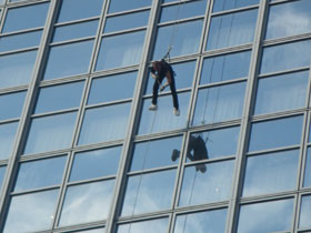 nennt sich das. An der Außenseite der Spiegelflächenfassade