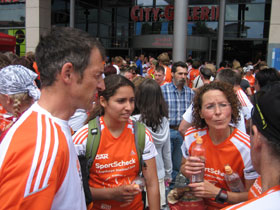 Ein Meer von orangefarbener T-Shirts schlängelte sich nach