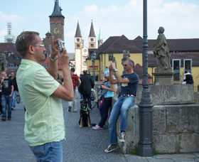 gegenüber der Passanten einimpfen. Endlich habe auch ich die Alte Mainbrücke erreicht, die Gerade