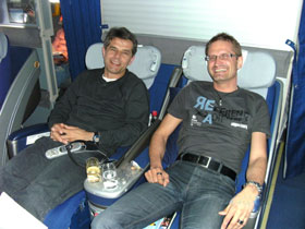 und mich in der Economy Class, trotz Versuch des Upgrade durch Georg.