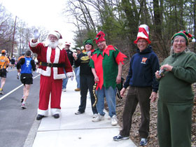 aufgereiht den Läufern etwas zur Erfrischung hinreichten. Bei