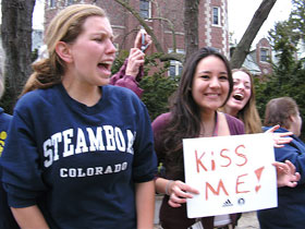und streckten ihre "Kisses-Schilder" in die Höhe.