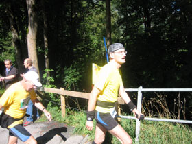konsequent in 3-Minuten-Intervallen die Läufer auf die Ausweichstrecke