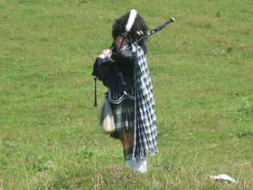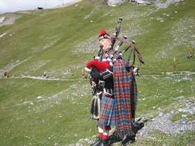 Am Ende der Moräne steht der Original Dudelsackbläser,