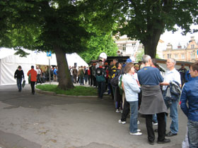 die Reihen und im Nu steht die Schlange bis zum Zelteingang, was