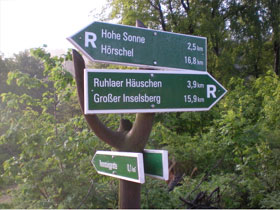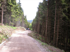 Hier wird auch der Rennsteig verlassen. Breite, ebene Wege führen