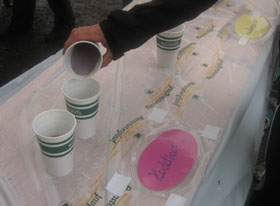 einen Becher Bier geschnappt, darüber bin ich jetzt nicht gerade
