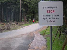 Langläufer, mich amüsiert das Schild: Stop Trainingsstrecke,
