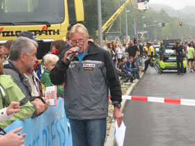 interviewed er unter dem Startbogen. Fünf Minuten vor dem Start