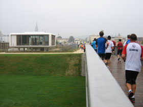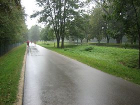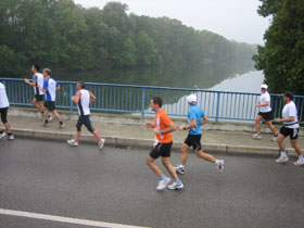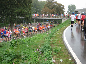 am Fluss entlang. Kurz nach dem 20 km-Schild werden die Halbmarathonis
