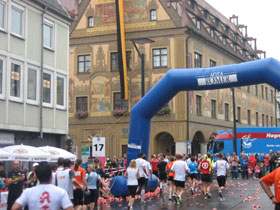 Zieleinlauf durch die City von Ulm. Kurz vor dem Münsterplatz