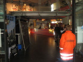 aufgestellt. Viel sind noch nicht drin. Der Shuttlebus zur Messe
