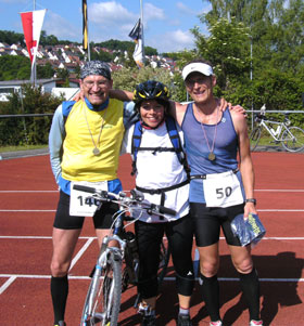 die 100 km Finisher noch Funktionshirts später im Ziel.