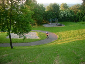 in Richtung Ulm zur Wilhelmsburg wieder abwärts, sodass sich