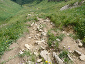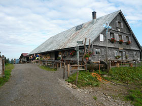 Nach zwei Kilometern passieren wir die ehemalige Alpe Almagmach,