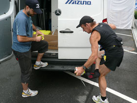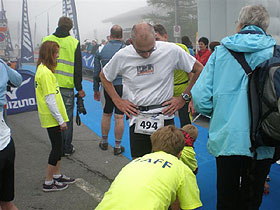 angebracht, für ihn bekommen wir eine Tüte mit dem Finishergeschenk