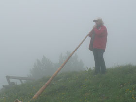 Darbietung einer Alphornbläserin vernehmen, den akustischen