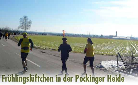 Nichts ist mehr zu spüen vom kalten Wind, im Gegenteil, ein wunderbar wärmendes Frühlingslüftchen trägt uns über die Pockinger Heide. Das macht so richtig Spaß nach den langen Winterwochen. Jetzt könnte ich zu meiner kurzen Hose auch noch gut ein kurzärmliges Shirt vertragen, aber ich will ja auch noch eine zweite Runde drehen und da geht es eben auch wieder gegen den Wind, daher verwerfe ich schnell den Gedanken, mich vom Rolli zu trennen.