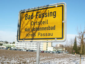Unser bevorstehendes Badevergnügen haben wir der Reichsbodenforschung zu verdanken, die dort 1938 Bohrungen nach Erdöl und Erdgas vornahm. Aber statt der erhofften Bodenschätze sprudelte lediglich 56° C heißes Thermalwasser nach oben, womit man seinerzeit erstmal noch gar nichts anfangen konnte und auch nicht durfte. Damit den damals populären Kurorten Karlsbad, Marienbad und Franzensbad keine Konkurrenz entstehen konnte, wurde eine Nutzung der Quelle vom Reichsbäderkuratorium untersagt. So kam es, dass das Füssinger Wasser erst nach dem Krieg von den Angehörigen eines nahen Flüchtlingslagers erstmals genutzt wurde, jedoch lediglich zu Reinigungszwecken.