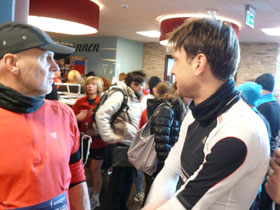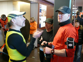 Im Gegensatz zum Samstag, ist am Sonntag mächtig Betrieb vor den Anmelde- und Abholschaltern, so dass kaum ein Durchkommen auf dem Weg ins Bad ist, wo sich unsere Umkleiden befinden. Da muss man schon etwas Stauzeit einplanen bis man seine Startnummer in Händen hält. Über 2.000 Anmeldungen für die Bewerbe Marathon, Halbmarathon, 10 km und Schülerlauf fordern sichtbar etwas Geduld, das hatten wir doch gestern wunderbar entspannt. Scheinbar ist doch der größte Teil erst heute Morgen angereist ist. Aus 16 Nationen kommen die Teilnehmer, es sind sogar welche aus Australien und China am Start.
