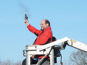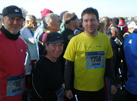 Um 9:45 Uhr wird der Zehner gestartet und 15 Minuten später sind die Halb- und wir Marathonis an der Reihe. Pünktlich werden wir vom Schirmherrn mit einem krachenden Schuss aus der Starterpistole in Bewegung gesetzt. In westlicher Richtung führt uns der Kurs am Ortsrand vorbei in den heutigen Ortsteil Safferstetten, wo seinerzeit die Bohrungen und die Entdeckung der Thermalquellen stattfanden.