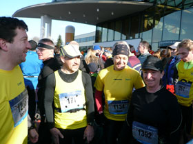 Somit wäre ich beim Wetter. Schnee, Nebel, eisiger Wind und klirrende Kälte bis -15 Grad, aber auch schon mal Sonne, alles war dabei in 17 Jahren Johannesbad Thermen-Marathon. Für den heutigen Tagesverlauf sind Temperaturen bis in den zweistelligen Plus-Bereich vorhergesagt und das gab es hier noch nie. Heute Nacht war es zwar noch frostig und auch der Sprecher weist uns darauf hin, dass an einigen schattigen Waldstücken noch glatte Passagen zu finden sind, aber ein Blick in den Himmel verspricht, dass es ein herrlicher Tag werden wird. Daher habe ich auf alle Fälle schon mal die kurze Hose ausgepackt.
