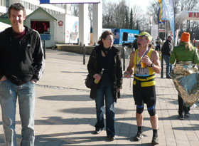 Magic ist schon seit Jahren Stammgast beim Thermen-Marathon. Er ist hier sogar seine persönliche Bestzeit gelaufen (unter 3 Stunden) und landet in seiner Altersklasse meist auf dem Stockerl. Heute betreibt er aber etwas Understatement. Bei dem schönen Wetter kommen viel zu viele gute Läufer her, da gibt’s kaum eine Chance für ihn. Er könne gleich langsamer machen, jammert er mir vor.