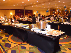 Eine Pastaparty gibt es am Vortag ebenfalls, ich hatte Tickets schon im Voraus gebucht. US-Pastapartys sind etwas anders als in Deutschland. Sie kosten daher entsprechend ($25 je Ticket), sind aber luxuriös, eben ganze Menüs. Salat, Nudeln, Reis, verschiedene Fleischsorten, Gemüse, Süßspeisen, es gibt eigentlich alles. Ich stopfte in mich rein bis ich nicht mehr konnte. Das Ganze findet im Marriott Hotel in Monterey statt.