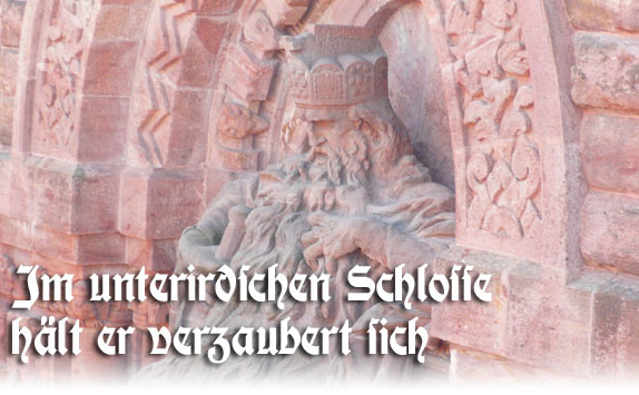 Ein kurzer Abstecher kann ja nicht schaden, ich werde mal schauen ob ich den alten Rotbart entdecken kann. Der Sage nach schläft er nur mitsamt seinen Getreuen um eines Tages zu erwachen, das Reich zu retten und es wieder zu neuer Herrlichkeit zu führen. Weiter vorne kann ich was sehen. Uuiiih, pfeilgrad …da sitzt er! Ich nehme ihn mit an die Strecke, befreie ihn von seinem Zauber und kann endlich wieder weiterlaufen.