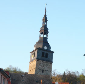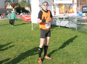 Einige hundert Meter weiter können wir noch einen Blick auf den höchsten schiefsten Turm der Welt werfen. Er weist mit 4,5 m, noch mehr Neigung auf als der berühmte Campanile von Pisa. Nach ersten Sanierungsmaßnahmen beträgt die mittlere Neigung pro Jahr aktuell ca. 2 cm. Verzweifelt wird mit vielen Aktionen um seine Rettung gekämpft. Diese gelingt nur, wenn für die Untergrundstabilisierung und Nachjustierung 1 Mio. Euro an Spenden bis zum 31. Mai 2011 gesammelt werden können. Ansonsten soll er definitiv abgerissen werden. Eine Schleife führt uns hinunter in die Stadt und zurück zum Schlossplatz, wo am ersten Zielbogen aber noch nicht Schluss ist, es darf noch fast eine Runde um das ganze Gelände gedreht werden. Meine Uhr zeigt mir nach dem Zieldurchlauf insgesamt 700 Höhenmeter an, optimal zum eingewöhnen. Meine Laufzeit entspricht trotz der Höhenmeter meiner durchschnittlich gelaufenen Zeiten bei einem Flachmarathon.