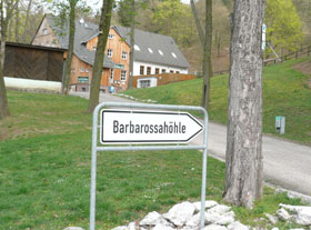 Ihre Popularität hat die Höhle seinen bizarren Deckengebilden, die an zum Trocknen aufgehängte Felle und Häute erinnern, zu verdanken und … es soll sich auch um Barbarossas sagenumwobenes unterirdisches Reich handeln. In der Höhle sollen Besucher mit viel Vorstellungs-vermögen den Kaiser sehen können, wie er auf einer Bank sitzt mit seinem roter Bart, der schon durch einen steinernen Tisch gewachsen ist.