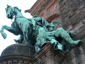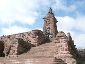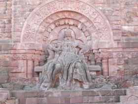 Besonders beeindruckend und zugleich das Wahrzeichen des Kyffhäuser ist jedoch das 81 m hohe Denkmal mit dem Reiterstandbild von Kaiser Wilhelm I. und dem in Stein gehauenen Barbarossa auf seinem Thron. Von 1890-1896 wurde es auf dem Gelände der alten Burg errichtet. Wer will, kann noch die 247 Stufen hinauf in die Turmkuppel steigen und einen grandiosen Rundblick bis zum Brocken genießen. Irgendwann jetzt im Frühjahr erwartet man den 5-Millionsten Besucher seit der Wiedervereinigung Deutschlands. Damit bringt es der Kyffhäuser im Schnitt auf fast 250.000 Besucher pro Jahr.