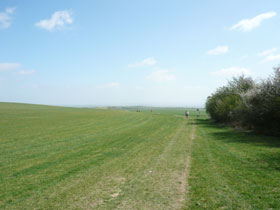 Auf „noch 19 km“ weist uns eine Tafel etwas unterhalb der Burganlage hin. Anders als gewohnt werden auf den Strecken-markierungen der gesamten Route, nicht die gelaufenen Kilometer, sondern die noch zu absolvierenden angezeigt. Jan hat sich auf dem zurückliegenden Bergabstück von mir abgesetzt und kommt mir hier bereits auf einem kurzen Begegnungsabschnitt wieder entgegen.